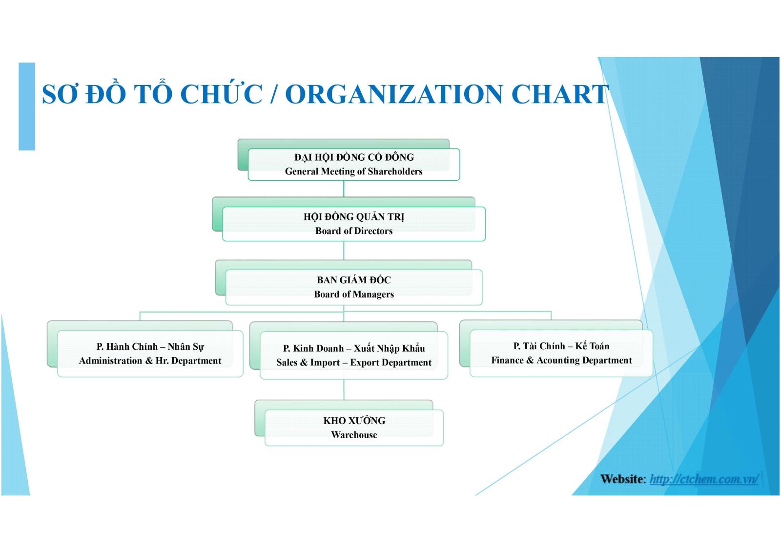 Công ty Cổ phần hóa chất C&T (C&T Chemicals JSC) là sự kết hợp của sự năng động, sáng tạo của đội ngũ nhân viên (Creativeness), kinh nghiệm chuyên sâu về mặt kỹ thuật (Techlogogy) và giải pháp toàn diện về hóa chất (Chemicals). Theo đó, chúng tôi xây dựng doanh nghiệp với Ban lãnh đạo là những chuyên gia kỳ cựu trong lĩnh vực hóa học, kỹ thuật và kinh tế. Chúng tôi cũng sở hữu đội ngũ nhân sự có năng lực chuyên môn xuất sắc, giàu kinh nghiệm thực tiễn, ý thức trách nhiệm cao và luôn tràn đầy nhiệt huyết trong công việc.